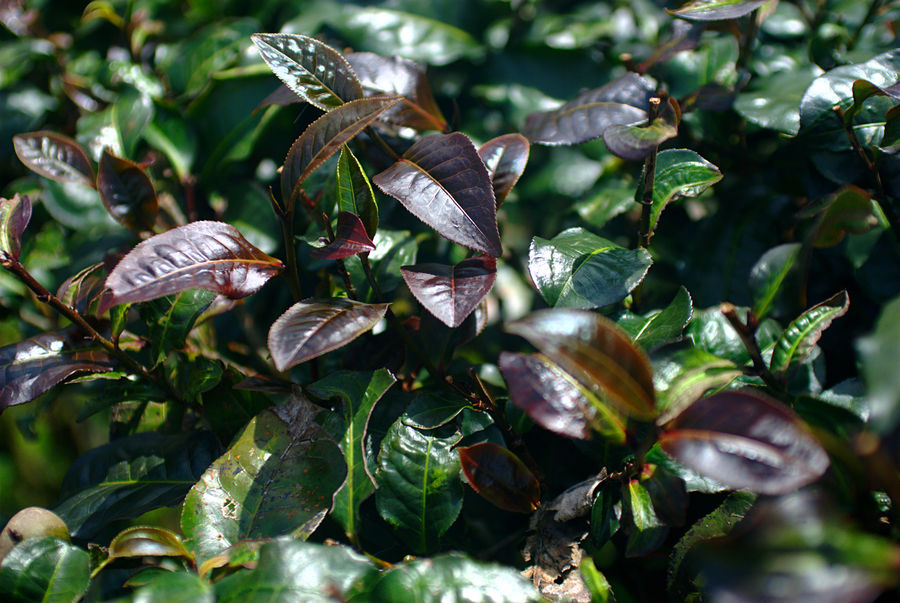 variety of Yunnan large leaf teas. Tea leaf appears purple red when young buds on the tea tree, tea products are dark green after being processed, tea